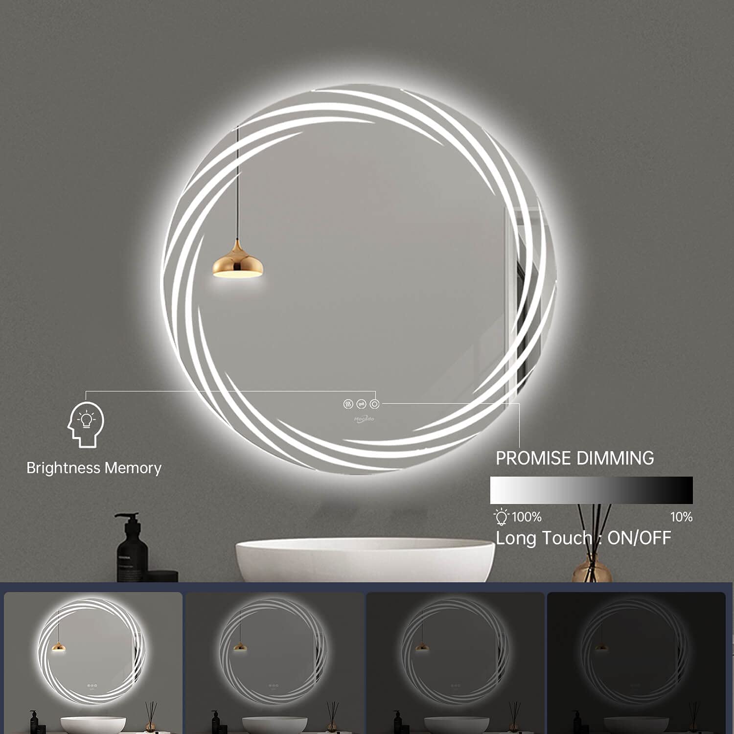 Erio Round LED Mirror with 3 LED Lights